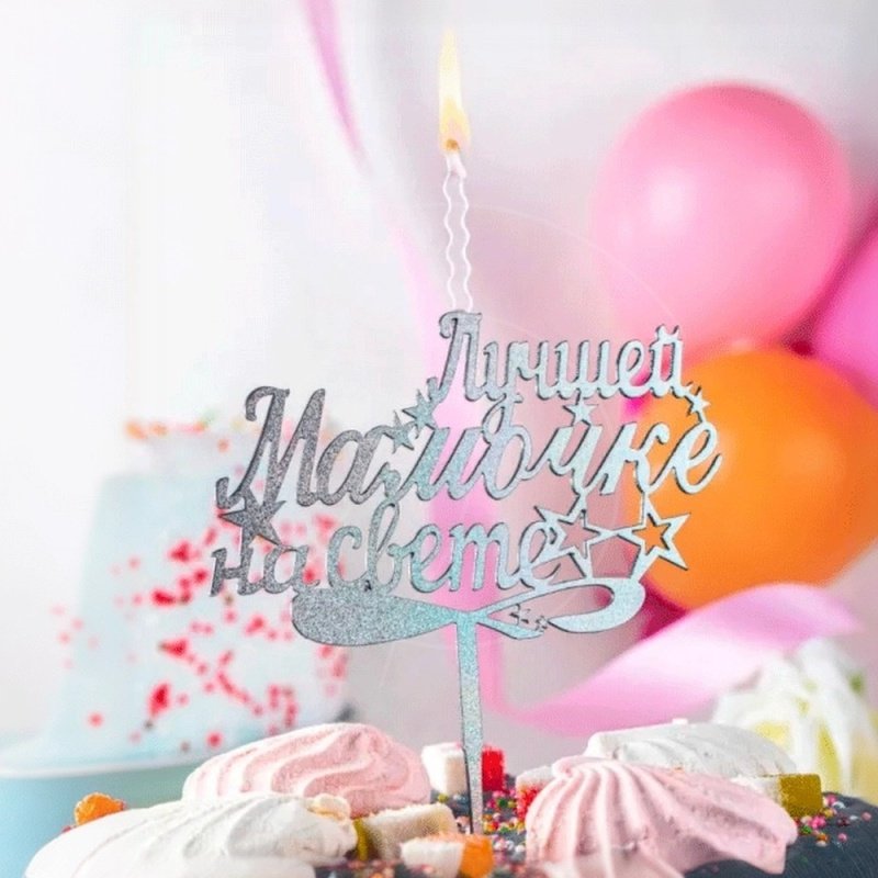 Доставка Свеча-топпер декоративная акриловая "Лучшей мамочке на свете" Серебро из магазина в вашем городе: