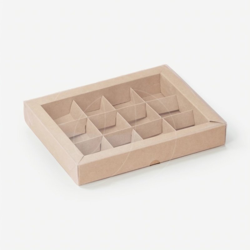 Доставка Коробка на 12 конфет с прозрачной крышкой крафт 16х20х3 см из магазина в вашем городе: